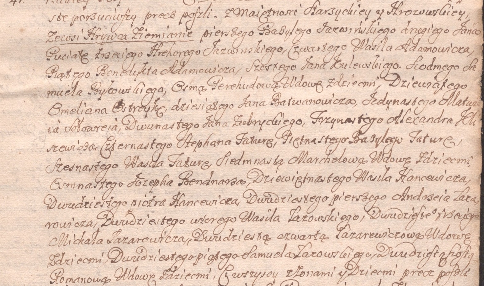 Fragment dokumentu z roku 1704 z listą ziemian z