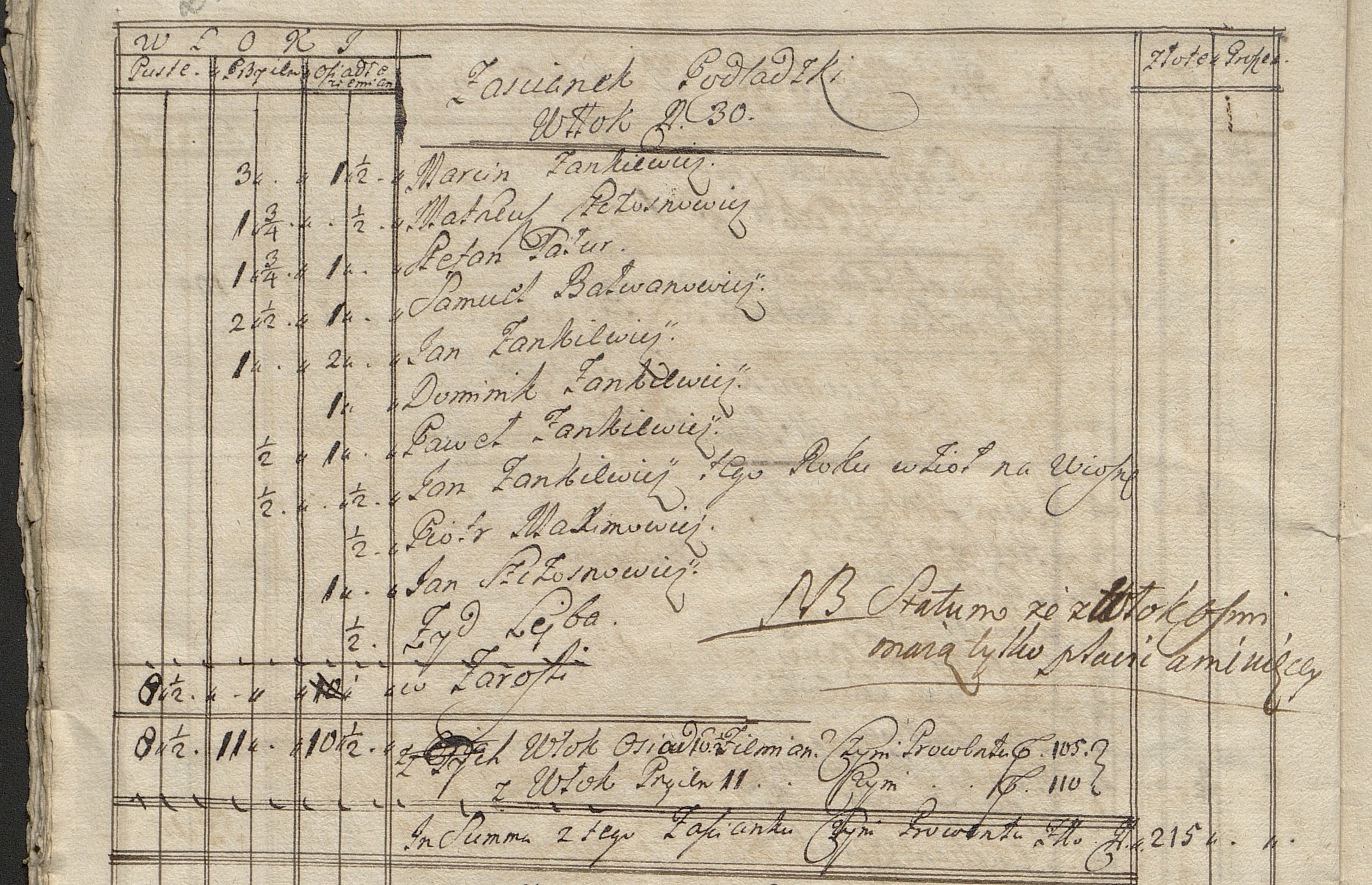 W roku 1730 Stefan Tatur mial w zaścianku Podsadzkim 2 i 3/4 włók ziemi.
